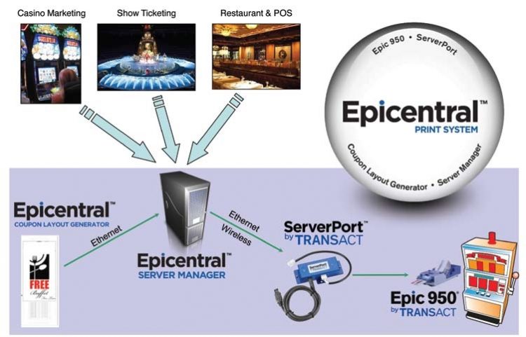“Epicentral is a way for casinos to take their existing Epic 950 printers and turn them into networked printers that print promotional coupons, marketing messages and to communicate with the players directly at the game while the player is playing,” explains Tracey Chernay, Executive Vice President, Sales & Marketing for TransAct.