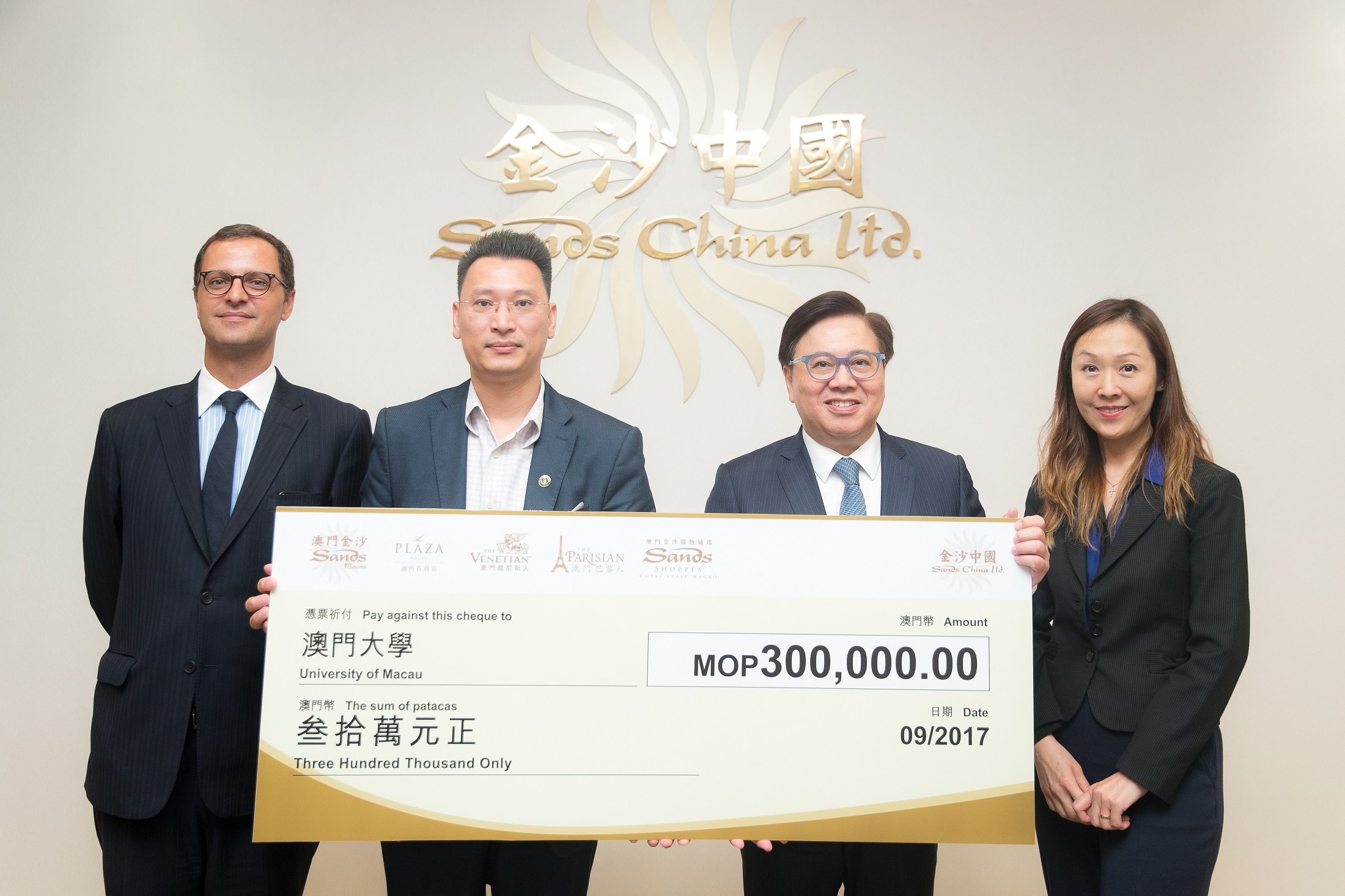 Sands China reiterated its support of local students at a cheque presentation ceremony at its company offices on Monday where it acknowledged the importance of higher education in nurturing Macau’s talent.