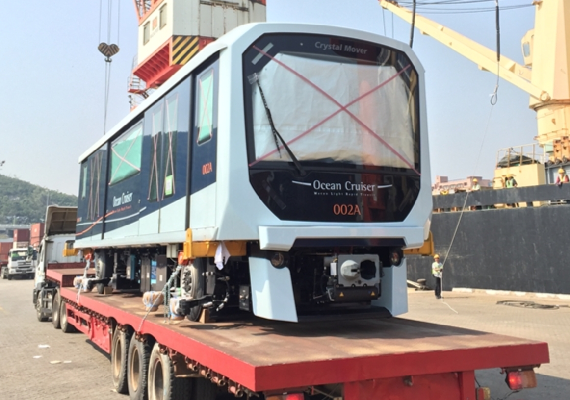 They won’t carry their first passengers until at least 2019 but the first four trains of Macau’s new Light Rail Transit (LRT) fleet arrived on Sunday following a week-long voyage from Japan.