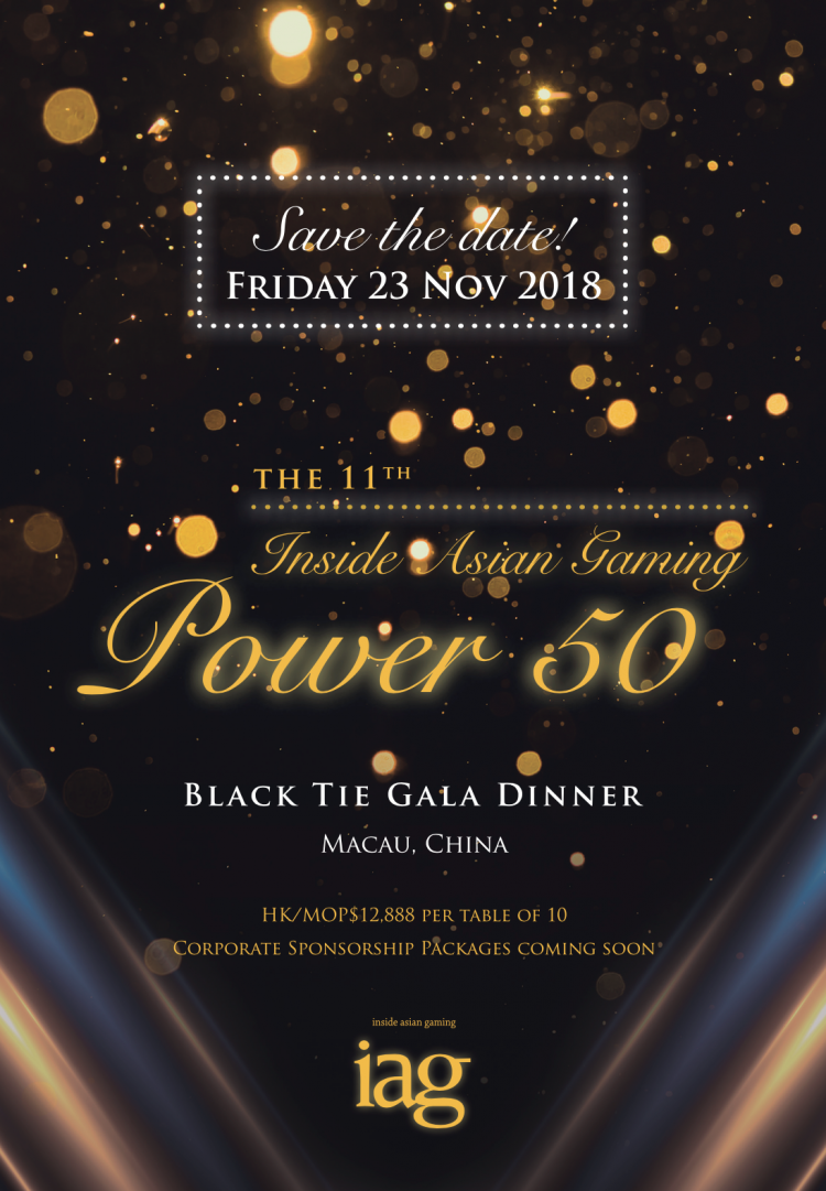 Following the success of 2017’s highly anticipated 10th anniversary IAG Asian Gaming Power 50 list of the most influential people in the Asian gaming industry, Inside Asian Gaming today announced that the 11th annual list, to be published in the December 2018 issue of IAG, will be unveiled at a black tie gala dinner to be held in Macau on the evening of Friday 23 November 2018.